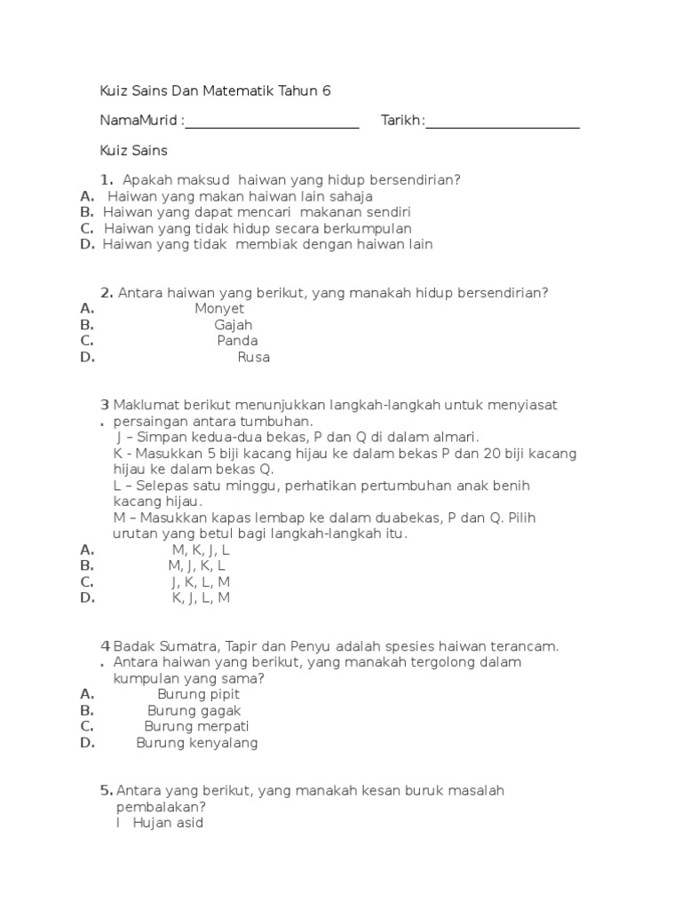 Kuiz sains dan matematik minggu sains dan matematik. Ujian pertengahan tahun matematik tahun 6. Documents similar to kuiz matematik tahun 6. Kuiz wang matematik tahun 6 5 soalan saja. Kuiz matematik tahun 6 developed by klomps is listed under category educational 4.2/5 average rating on google play by 37 users).